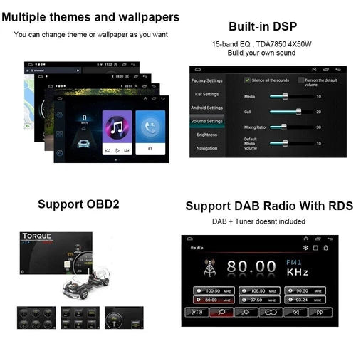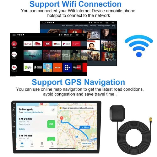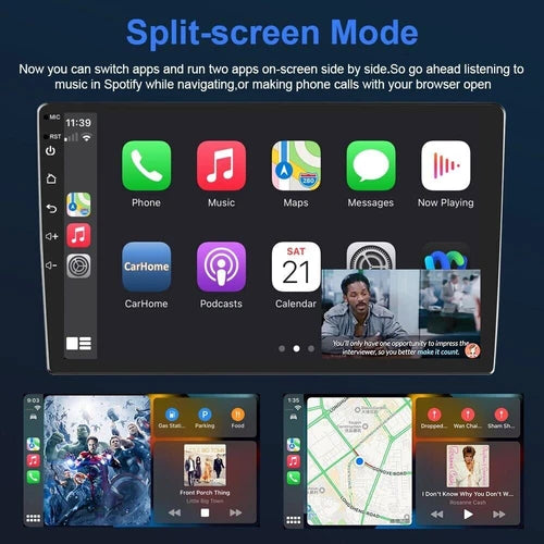 ●HD 10.1'' 2.5D Tempered Glass Mirror auto radio player ●Wireless Carplay: You can choose wired connection or wireless connection to carplay, connect to Apple mobile phone, access mobile phone address book, mail, notification, map navigation, music, video and other information, and realize voice control. ● Android auto: The Android auto car system can closely integrate the user's Android phone and player, and realize navigation, make calls, send and receive information, listen to music and other operations through data cable connection; ●Built-in GPS Navigation: Users can purchase directly from play store for offline navigation. With wifi connected, Google Maps can be used perfectly, you can go anywhere you want and never get lost again. ●High definition 1080P: Full capacitance touch screen for easy operation, well designed user interface for car only ●Built-in WIFI: Connect to WIFI, and you will find a new world,the most convenient one is the online map. ●Rear camera: support AHD high-definition 720P camera image input,you can switch between CVBS and AHD simply by choosing in the settings(requires optional) ●Steering wheel control: Through it you can control the functions you need by steering wheel, more convenient ●Built-in Bluetooth with A2DP/Hands Free/Phone book:Bluetooth hands-free calls,Bluetooth music player,Auto loading phonebooks ●Driving recorder: You can choose a recorder, and the car has playback, the evidence can be retained(requires optional) ●Double USB adapter input ●Support file manager: Support download, install and delete over thousands of android apps ●Support multilanguage: Support languages, up to 40 national languages ●You can enjoy music from you mobilephone without any cables, and also support USB connetion. ●FM Radio: Online music you can transfer the music to the car stereo by FM to enjoy the original car stereo sound,with 18 preset stations ●Time Setting:You can use the network or GPS to open the date and time automatically, or you can adjust it manually. ●Support external microphone