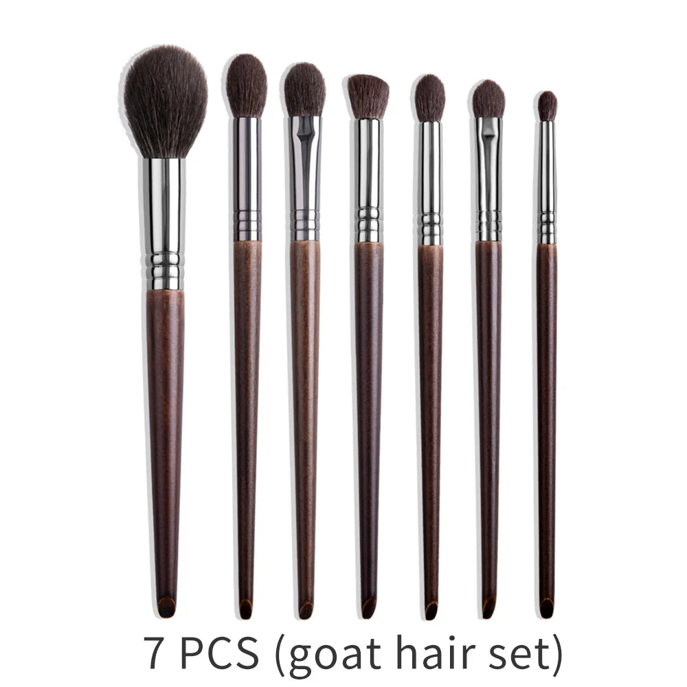 2.Hair Material Goat Hair :11 pcs (face brushes*5, eye brushes*6 ) Super soft natural goat hair bristles ,pick up and diffuse powder seamlessly over the skin