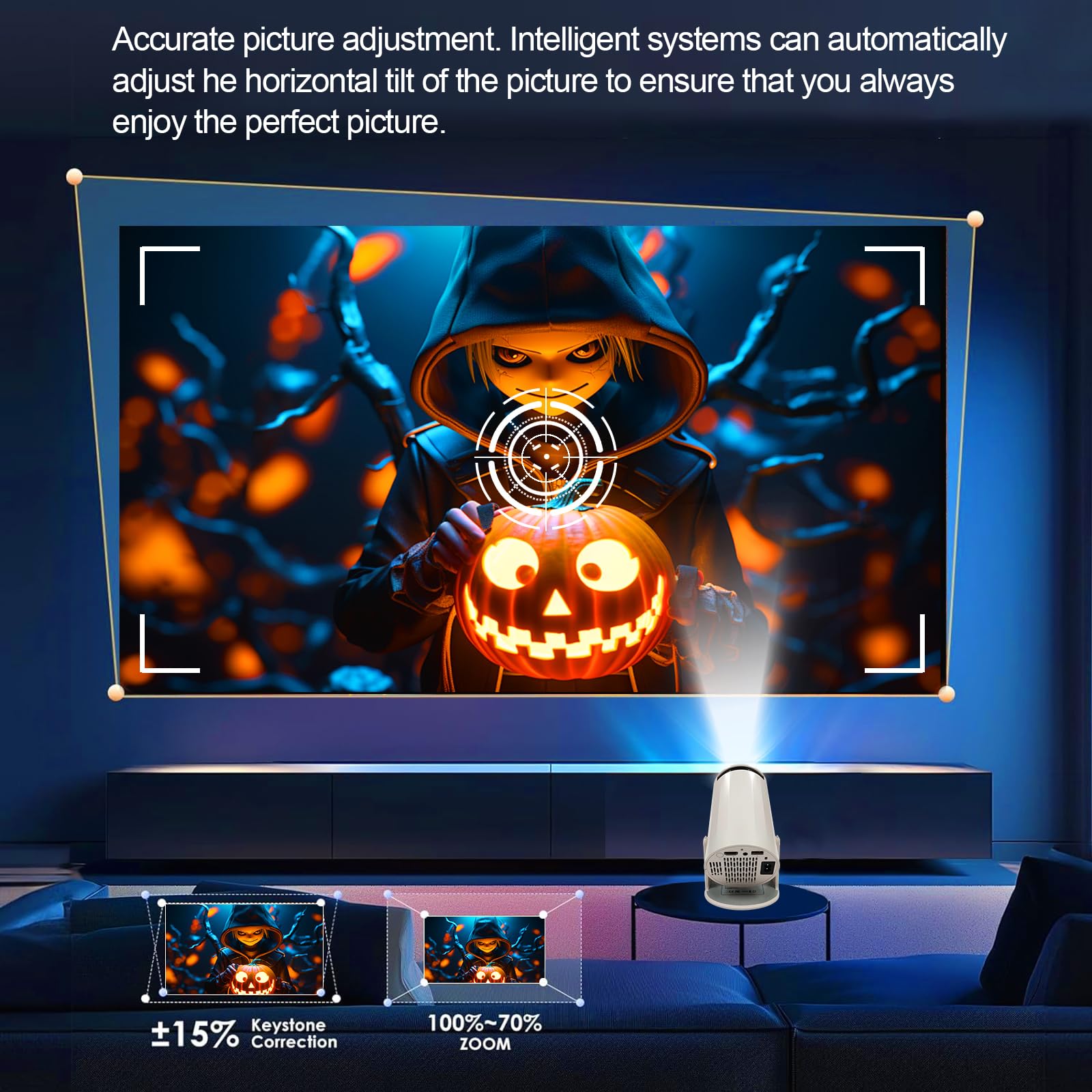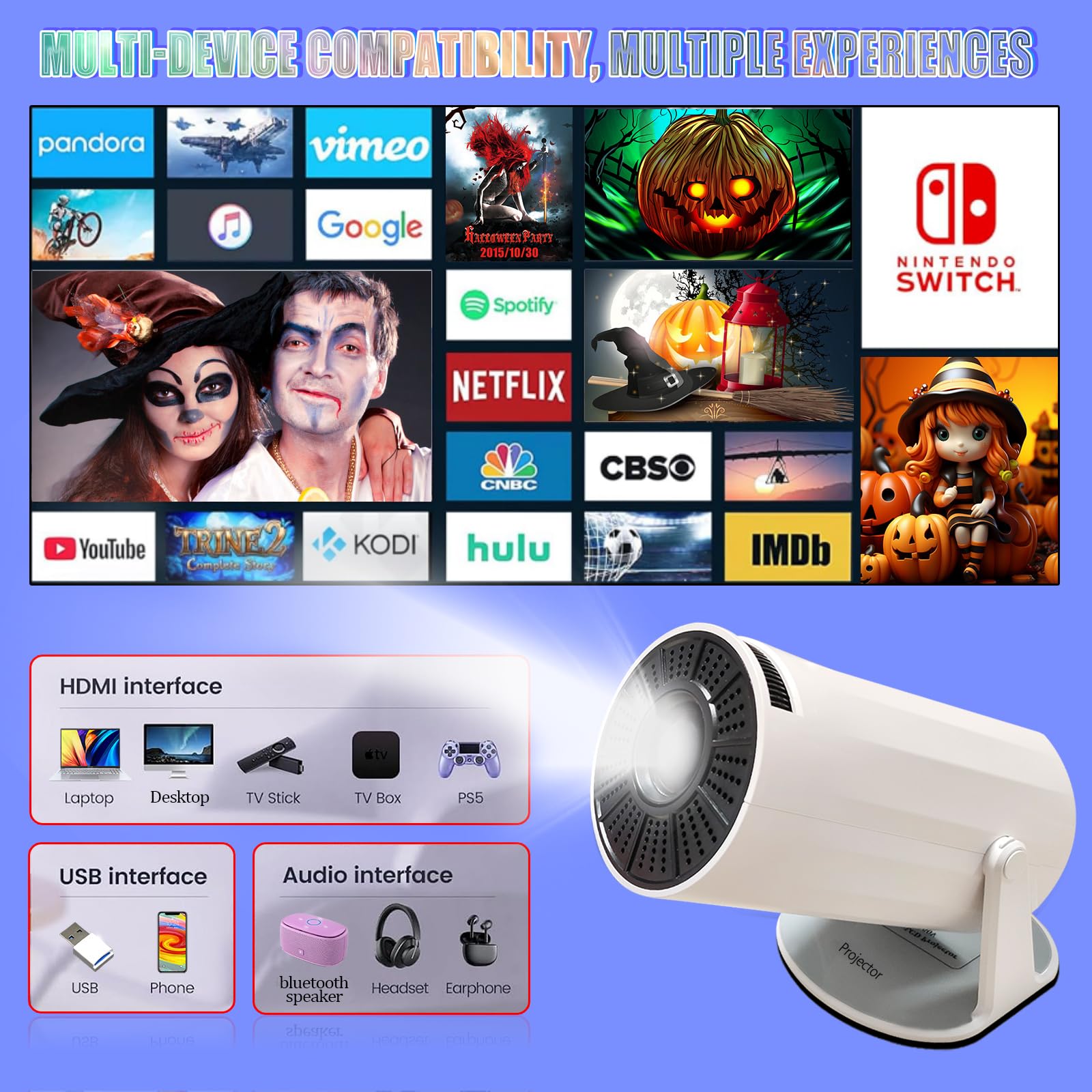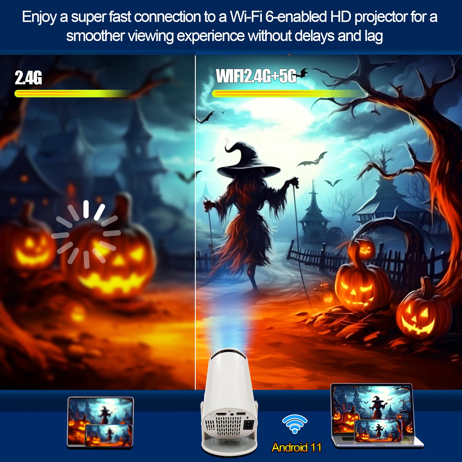 Experience ultimate home entertainment with this portable mini projector, designed for movies, gaming, and outdoor movies. Equipped with Bluetooth 5.0 technology, this 1080P HD projector allows seamless connection to smartphones, tablets, laptops, and audio devices, delivering crisp visuals and stereo sound for an immersive viewing experience. Its advanced keystone correction and adjustable projection distance ensure flexible installation, making it perfect for bedrooms, living rooms, or backyard movie nights. Featuring multiple connectivity options including HDMI, USB, and VGA, this Android projector easily connects to game consoles, laptops, and other devices without compatibility issues. The built-in Android 11 smart OS provides instant access to Netflix, Prime Video, YouTube, and thousands of other apps, eliminating the need for extra TV sticks while offering unlimited entertainment at your fingertips. With a long-lasting light source up to 50,000 hours and reliable technical support, this mini home theater projector ensures high-quality viewing for movies, sports, gaming, and streaming anytime, anywhere.
